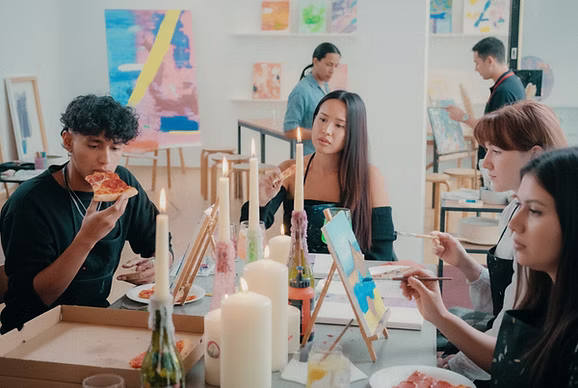 Lass den Arbeitstag entspannt ausklingen und werde kreativ! Bei unserem "Paint, Pizza & Vino"-Workshop erwartet Dich eine lockere Atmosphäre, in der Du mit Acrylfarben auf Leinwand Deiner Kreativität freien Lauf lassen kannst. Egal, ob Du schon Erfahrung hast oder einfach mal etwas Neues ausprobieren möchtest – dieser Abend ist für alle geeignet! Während Du Dein eigenes Kunstwerk gestaltest, kannst Du leckere italienische Pizza genießen und dazu ein Glas Wein trinken. Der perfekte Mix aus Kunst, Genuss und geselligem Beisammensein. Ob alleine, mit Freunden oder Kollegen – in unserem Atelier hast Du die Gelegenheit, neue Leute kennenzulernen und einen entspannten Abend zu erleben. Melde Dich jetzt an und freue Dich auf einen Abend voller Kreativität, Genuss und Spaß! Einzel-Termine: - Mi, 25.03.26 (19.00 - 21.30 Uhr) - Mi, 29.04.26 (19.00 - 21.30 Uhr) - Mi, 27.05.26 (19.00 - 21.30 Uhr) - Mi, 24.06.26 (19.00 - 21.30 Uhr) Kursgebühr: - 89 € pro Person (Teilnahme ab 18 J.) - Acryl-Materialien - Pizza Catering von L´Angolino (Margarita, Funghi, Salami zur Auswahl) - Weißwein, Rotwein, Softdrinks Im Kurs enthalten: - Umfassende Einführung in die Acrylmalerei: Farben, Eigenschaften, Mischtechniken und mehr - Erlernen verschiedener Maltechniken: Lasieren, Spachteltechnik und vieles mehr - Experimentieren mit Farben und Werkzeugen: Acrylfarben in großer Auswahl, Pinsel, Paletten und andere Hilfsmittel - Individuelle Betreuung durch erfahrene Kursleiter: Hilfestellung, Tipps und Tricks für Deinen kreativen Erfolg - Entspannte Atmosphäre zum Wohlfühlen: Gemeinsames Schaffen in unserem Atelier in Haidhausen Alle Materialien werden bereitgestellt: - Hochwertige Acrylfarben in verschiedenen Farben - Malplatte Format 30 x 40 cm - Auswahl an Pinseln, Spachteln und anderen Werkzeugen - Malkittel zum Schutz der Kleidung Jetzt Platz reservieren und dabei sein! Du kannst Deine Termine unkompliziert online buchen. Weitere Kurse & Informationen findest Du unter dem Menüpunkt "PAINTING EVENTS".